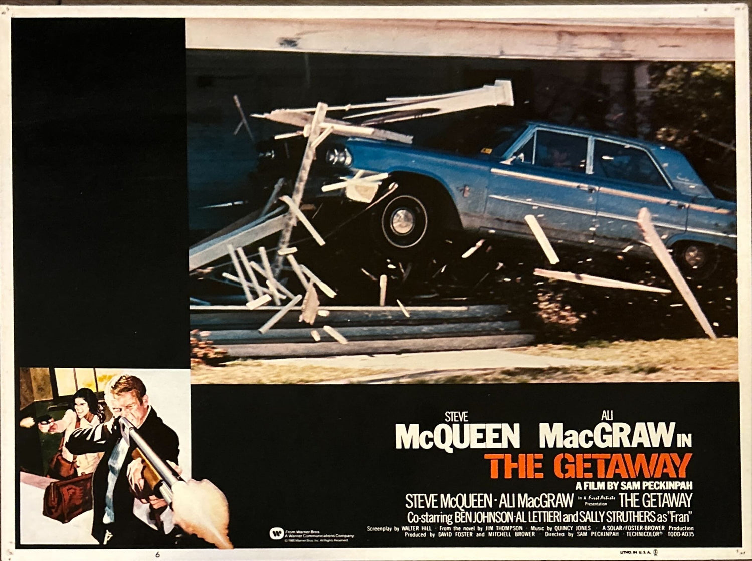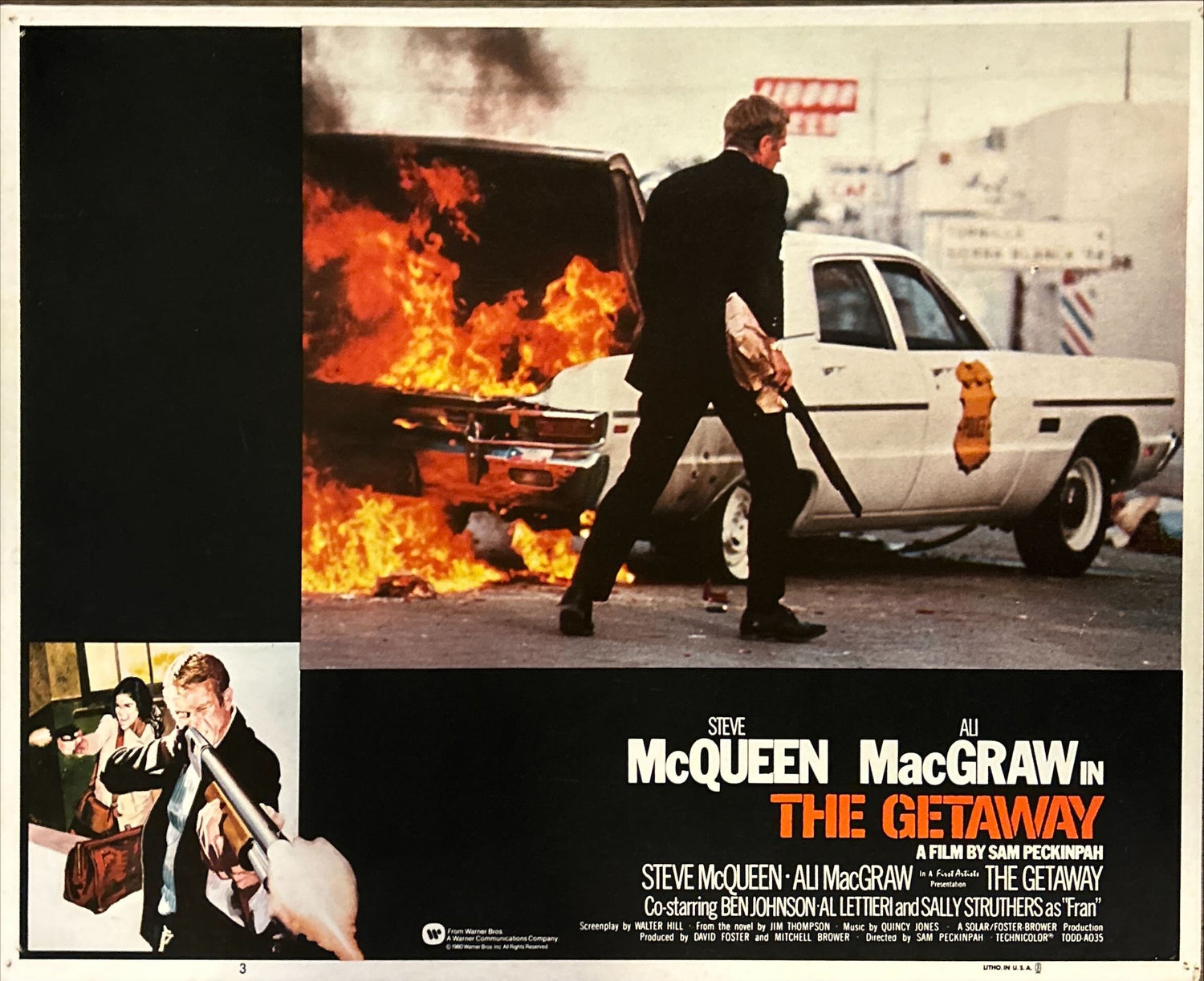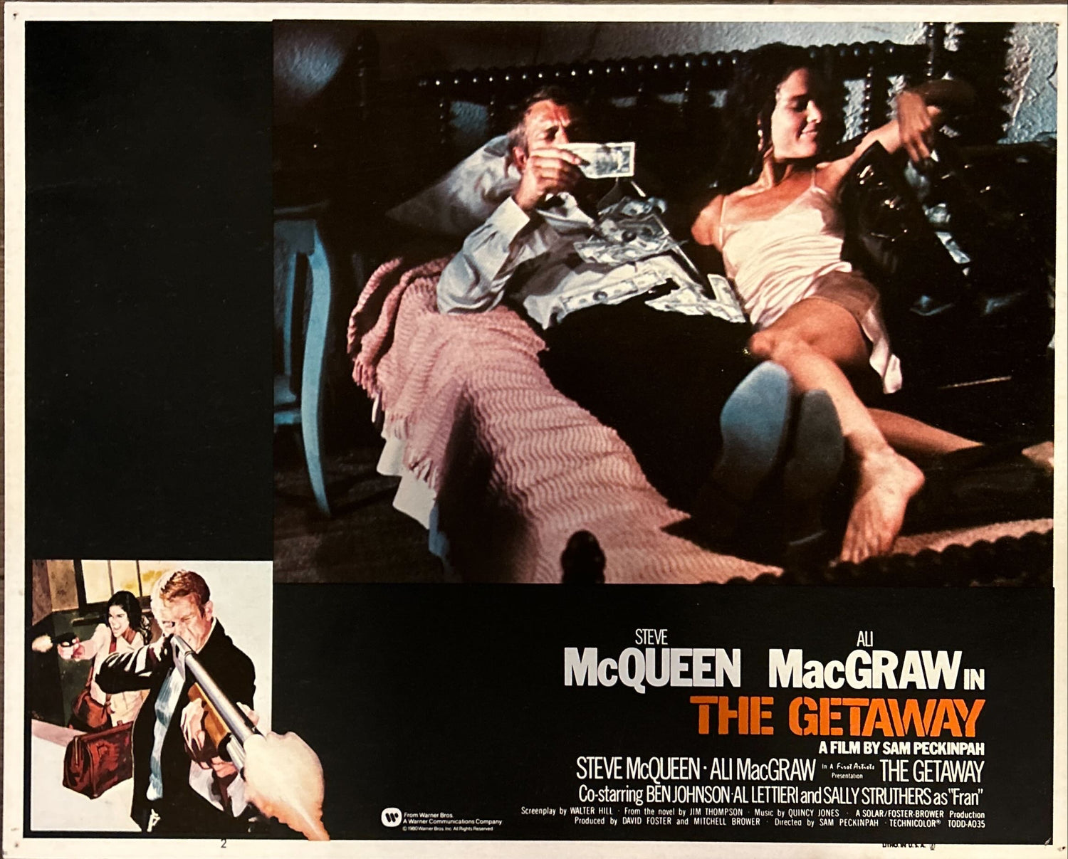 The Getaway, the classic 1972 Sam Peckinpah romantic crime action thriller ("Screenplay by Walter Hill"; "From the novel by Jim Thompson") starring Steve McQueen