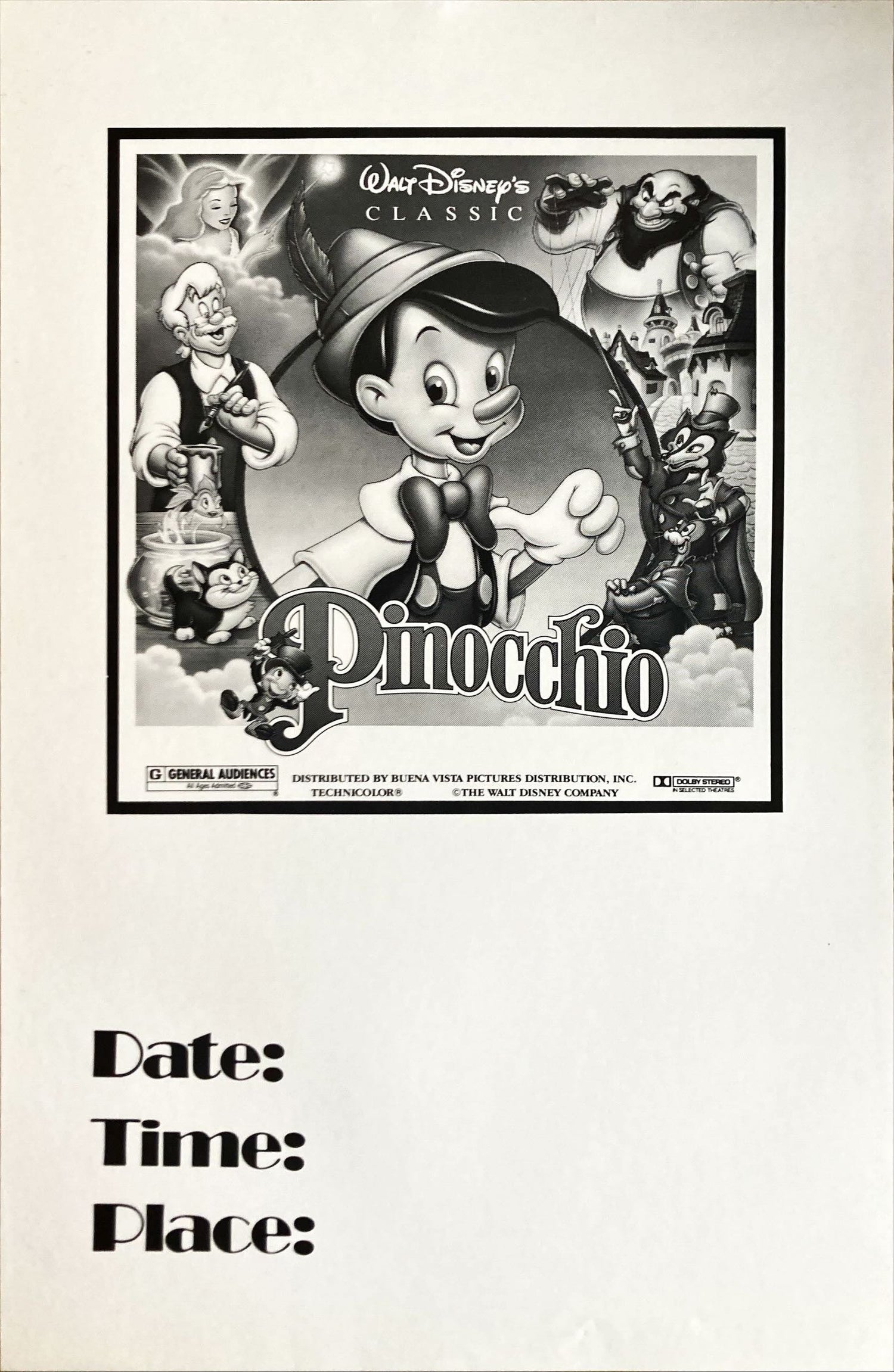 Walt Disney's Pinocchio, DS 1sh R1992 Disney + Ads