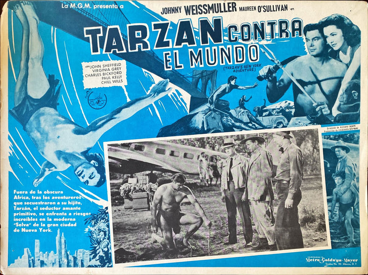 Tarzan's New York Adventure, the 1942 Richard Thorpe ape-man-in-New-York-City kidnapping crime action adventure thriller ("You never saw anything like it!"; "Based upon the characters created by Edgar Rice Burroughs") starring Johnny Weissmuller (in the title role as Tarzan), Maureen O'Sullivan (as Jane), Johnny Sheffield (as "Boy"), Virginia Grey, Charles Bickford, Paul Kelly, Chill Wills, Cheeta (the chimpanzee!), and Eddie Kane
