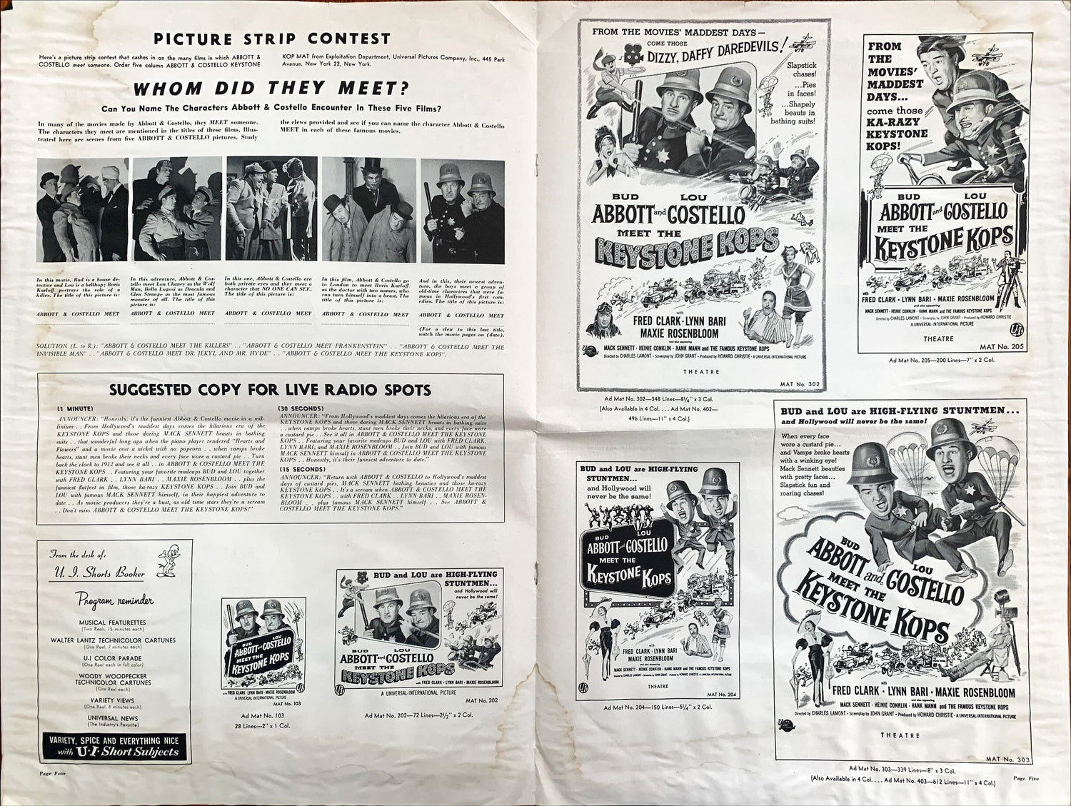 Abbott and Costello Meet the Keystone Kops, pressbook 1955