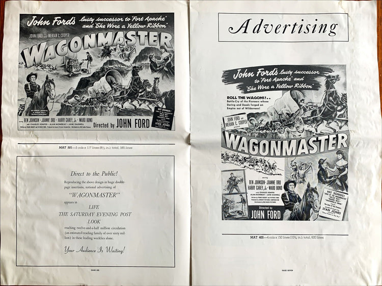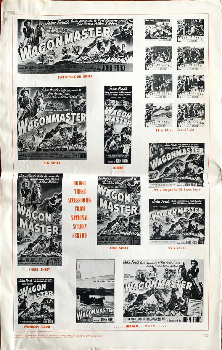 Wagon Master, the 1950 John Ford cowboy western ("John Ford's lusty successor to 'Fort Apache' and 'She Wore a Yellow Ribbon'"; "Written by Frank Nugent & Patrick Ford"; produced by John Ford and Merian C. Cooper; about drifters who lead a Mormon wagon train to the San Juan Valley)