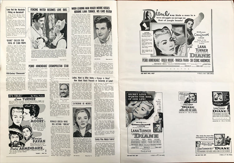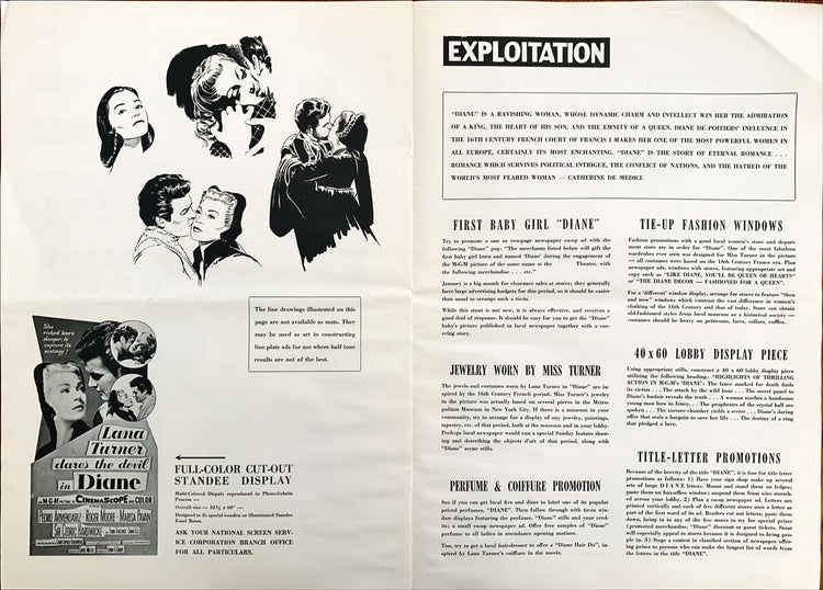 Diane, the 1956 David Miller royalty romantic love triangle melodrama ("Lana Turner dares the devil in 'Diane'."; "She risked love's danger, to capture its ecstasy!"; "Based on the Story 'Diane de Poitiers' by John Erskine") starring Lana Turner