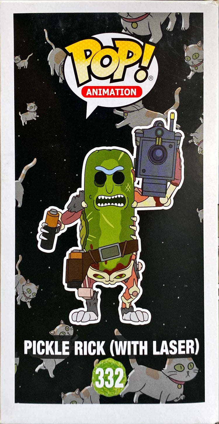 - From Rick and Morty, Pickle Rick with laser, as a stylized POP vinyl from Funko!