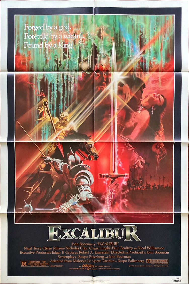 John Boorman's Excalibur, the 1981 John Boorman English/U.S. Camelot sword-and-sorcery Knights-of-the-Round-Table medieval fantasy adventure thriller ("Forged by a god. Foretold by a wizard. Found by a King.";