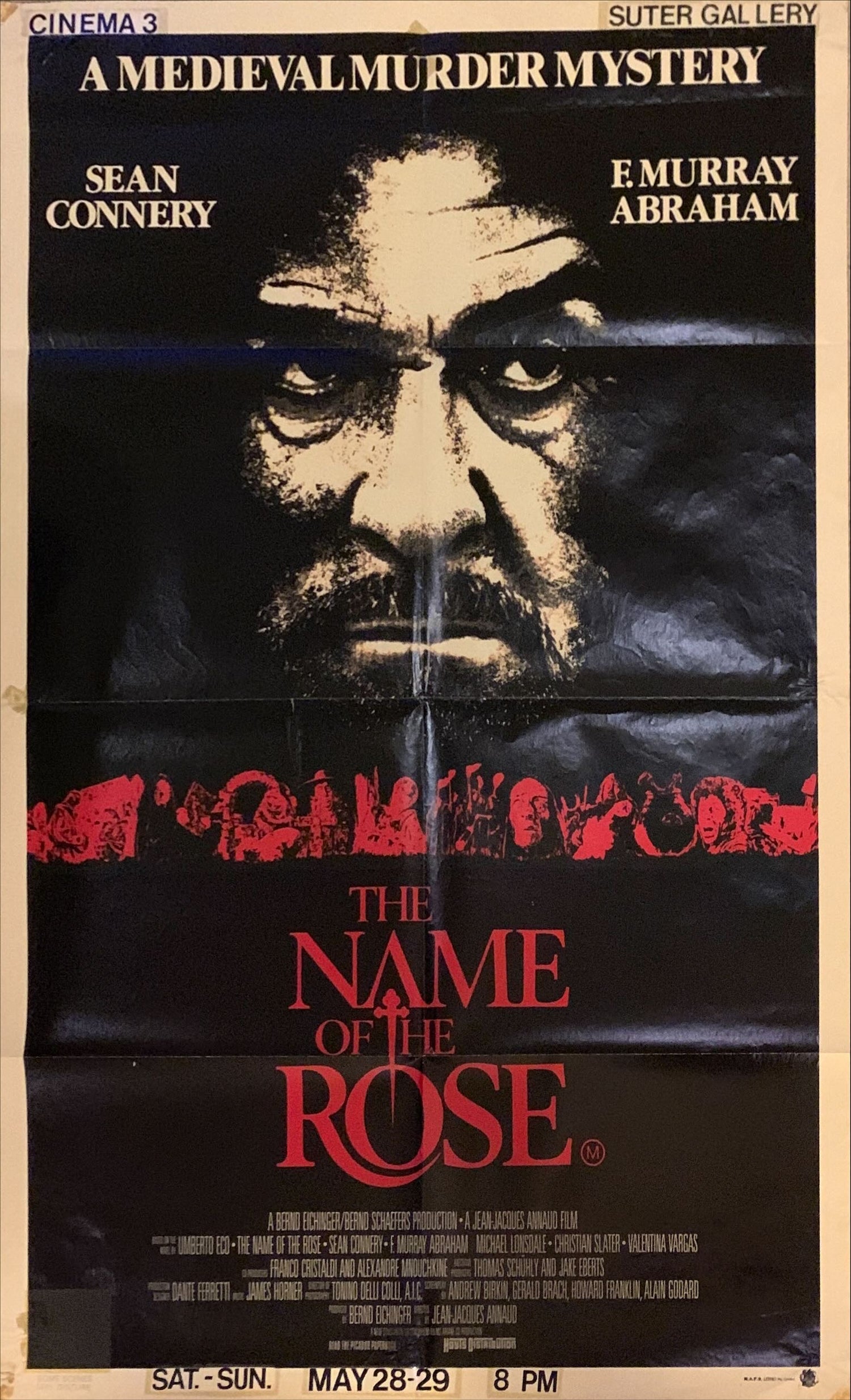 Der Name der Rose (released in the U.S. as "The Name of the Rose"), the 1986 Jean-Jacques Annaud French/Italian/German religious medieval monk murder mystery fantasy thriller ("Who, in the name of God, is getting away with murder?"