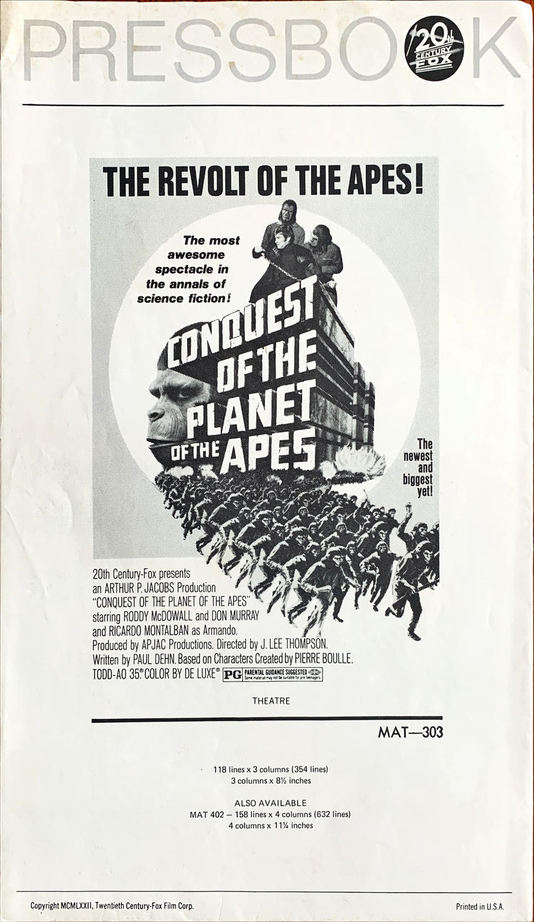 #615 CONQUEST OF THE PLANET OF THE APES pressbook 1972 Roddy McDowall