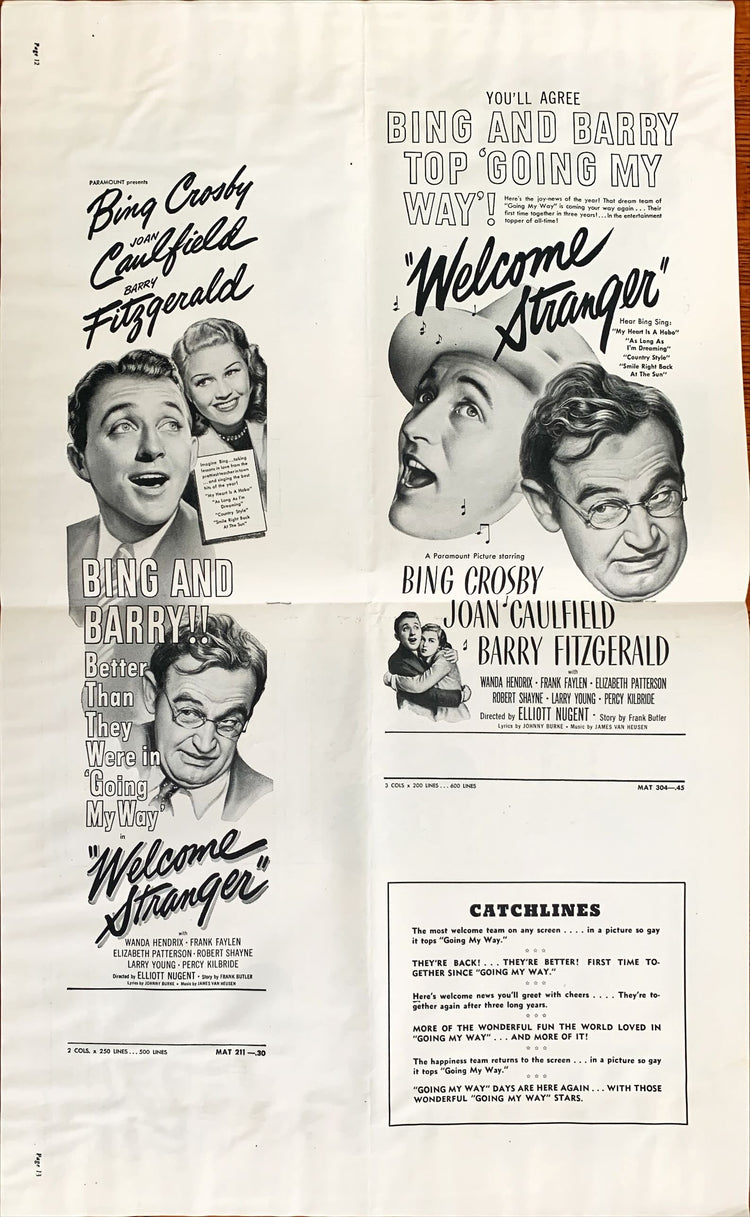 #603 WELCOME STRANGER pressbook '47 Bing Crosby