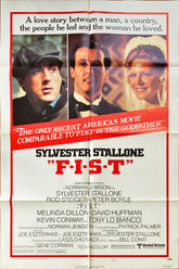F.I.S.T., the 1978 Norman Jewison trade-union labor melodrama ("A love story between a man, a country, the people he led and the woman he loved."; "Story by Joe Esztherhas") starring Sylvester Stallone, Rod Steiger, Peter Boyle, Melinda Dillon, David Huffman, Kevin Conway, and Tony Lo Bianco