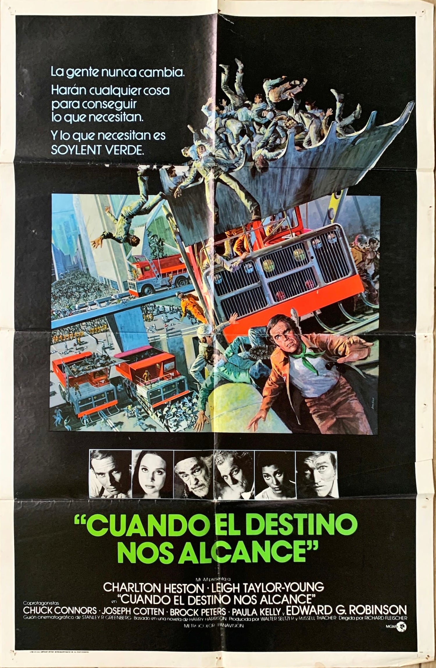 Soylent Green, the classic 1973 Richard Fleischer science fiction (sci-fi) dystopian future thriller ("It's the year 2022... People are still the same. They'll do anything to get what they need. And they Need Soylent Green."; "People never change. They'll do anything to get what they need. And they Need Soylent Green"; "People need it... in the year 2022.";