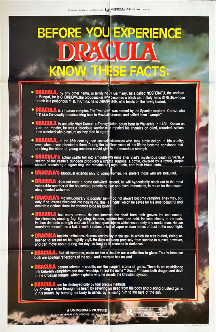 Dracula, the 1979 John Badham English/U.S. vampire monster horror thriller ("Throughout history he has filled the hearts of men with Terror, and the hearts of women with Desire."; "A Love Story"; "Based on the stage play by Hamilton Deane and John L. Balderston"; "From the novel by Bram Stoker") starring Frank Langella (in the title role as Count Dracula), Laurence Olivier (as Professor Van Helsing), Donald Pleasence, Kate Nelligan, Trevor Eve, Jan Francis, Janine Duvitski, and Tony Haygarth (as Renfield)