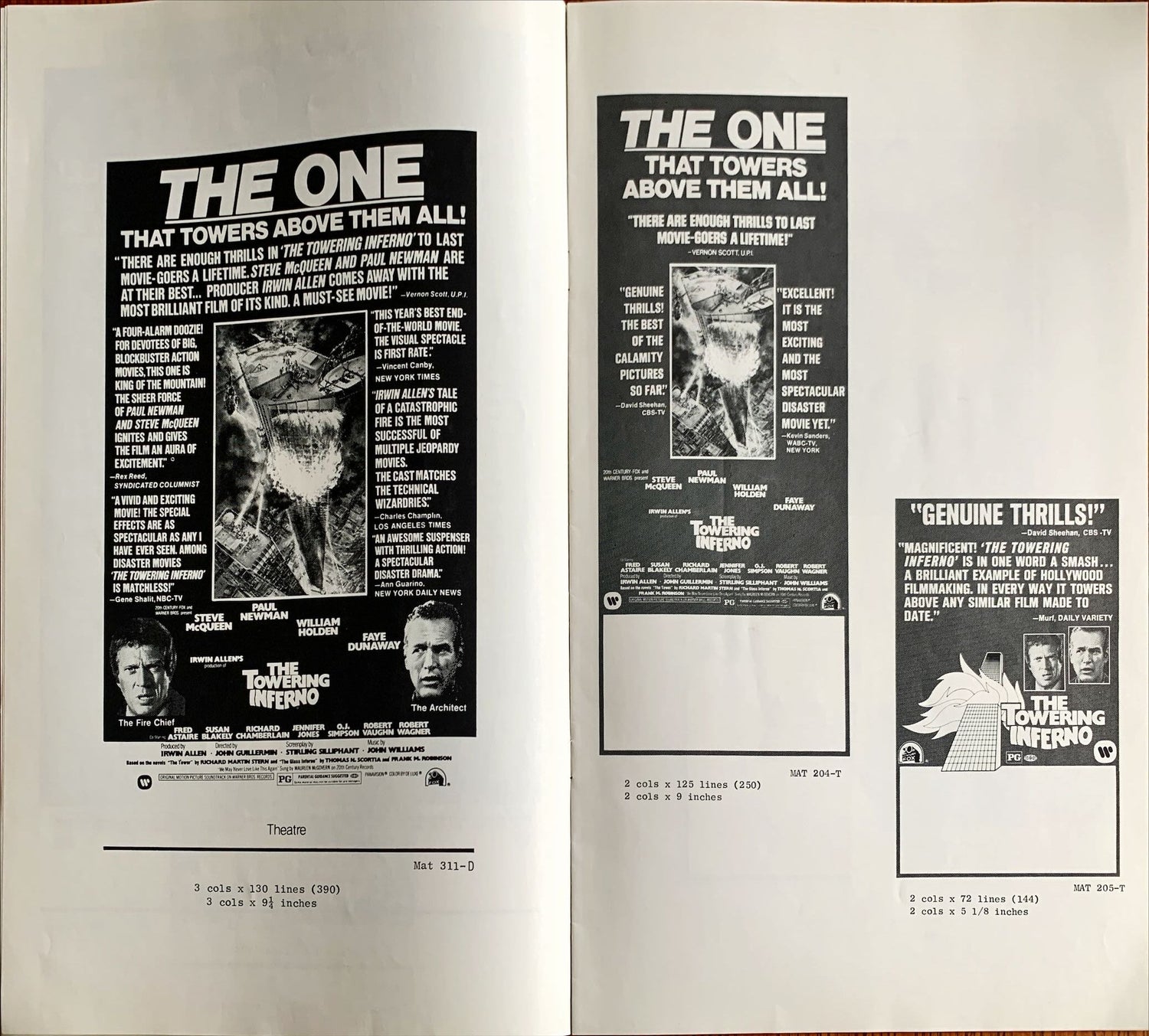 The Towering Inferno, pressbook 1974 Steve McQueen, Paul Newman