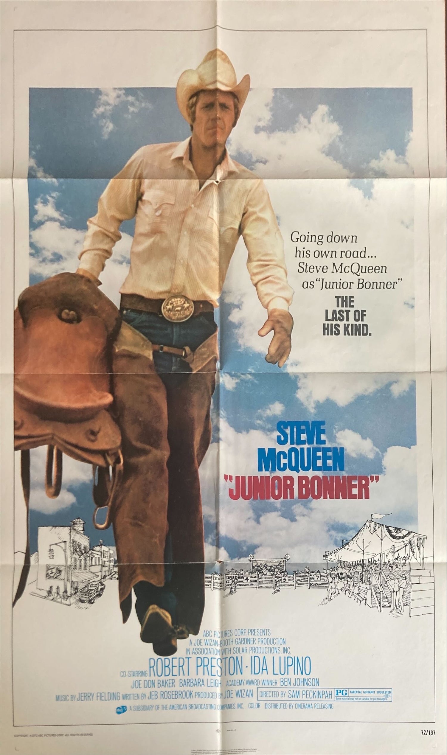Junior Bonner, the 1972 Arizona rodeo family cowboy western ("Going down his own road... Steve McQueen as 'Junior Bonner' The Last Of His Kind."; '"Tell 'em Junior sent you"'