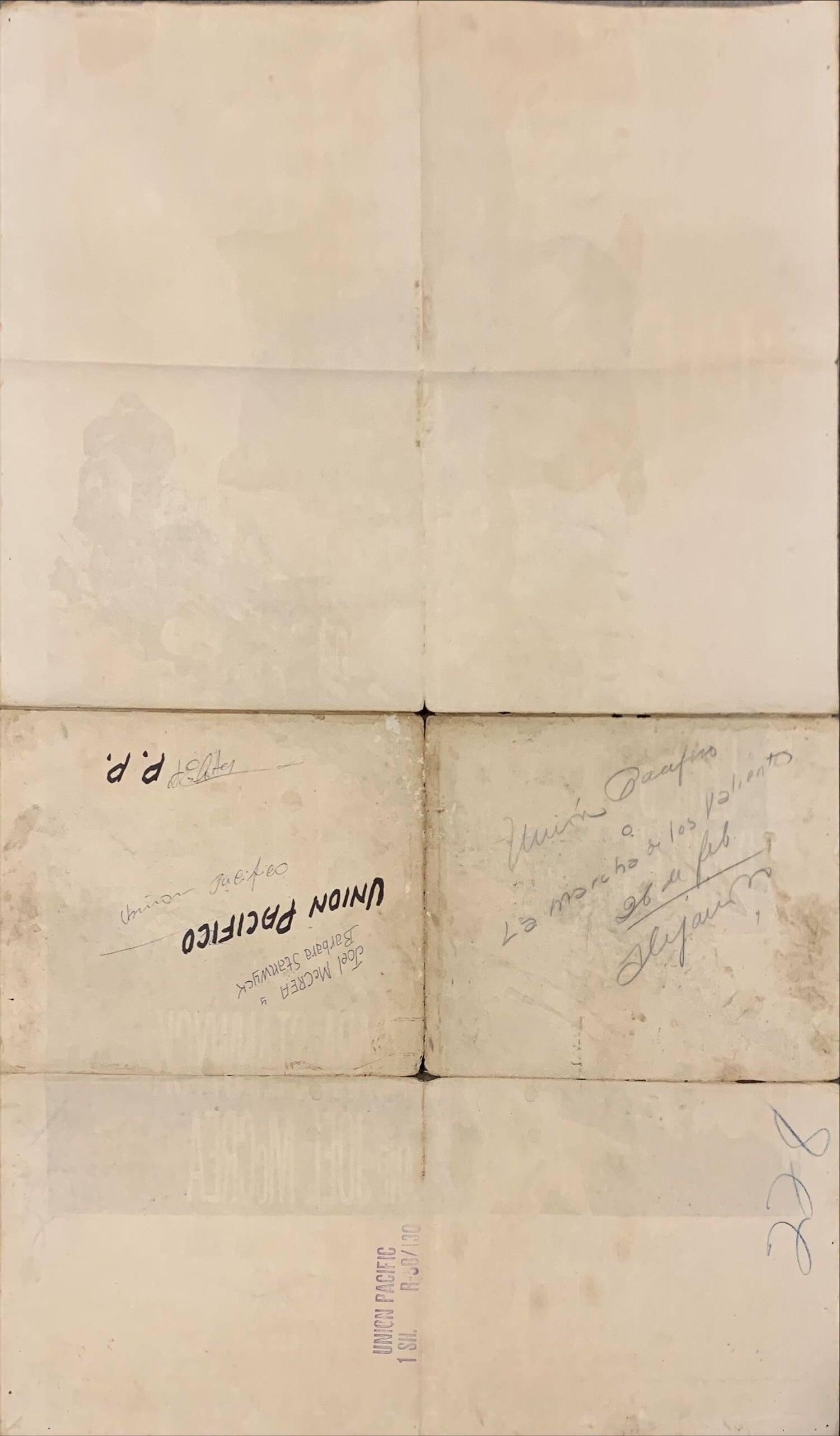 Union Pacific 1sh R1958 Cecil B. DeMille, Barbara Stanwyck, Joel McCrea & cool train art