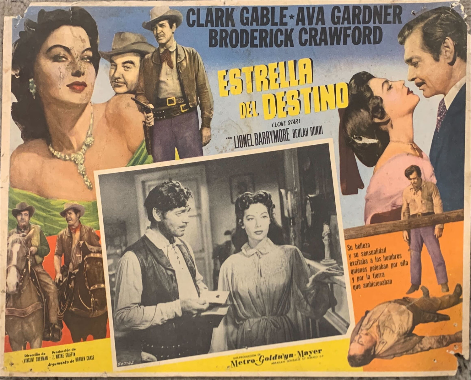 Lone Star, Mexican Lobby Card, Clark Gable 1951