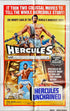 1973 double-bill release ("It took two colossal movies to tell the whole incredible story!"; "The original uncut Joseph E. Levine Presentations") of Le Fatiche di Ercole (released in the U.S. in 1959 as "Hercules"), the 1958 Pietro Francisci Italian sword-and-sandal action adventure fantasy thriller ("Mighty saga of the world's mightiest man!") starring Steve Reeves