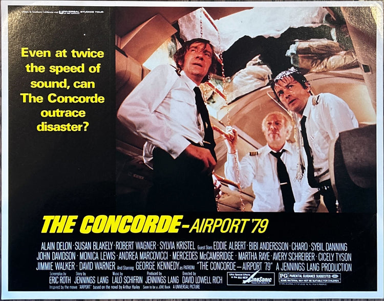 The Concorde: Airport '79 (released outside the U.S. as "Airport '80: The Concorde", because it was released in 1980, so of course the title needed to be changed!), the 1979 David Lowell Rich airplane aviation disaster thriller ("Even at twice the speed of sound, can the Concorde outrace disaster?"; "At twice the speed of sound, can the Concorde evade attack?"; "A great motion picture tradition... The most exciting of them all!" Starring Alain Delon, Susan Blakely, Robert Wagner, Sylvia Kristel