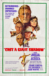 Cast a Giant Shadow, the 1966 Melville Shavelson Israeli Jewish War of Independence military melodrama ("OUTNUMBERED - UNARMED - UNPREPARED - they stunned the world with their incredible victory!"; "'WE WILL PUSH YOU INTO THE SEA!'"; "Outnumbered... unarmed... unprepared... They hurled back their answer in flesh - in flame - in victory!"; "His name was Mickey... he fought like David