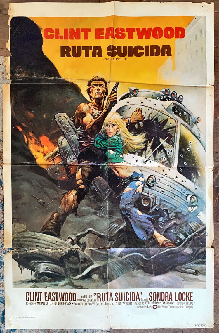 The Gauntlet, Spanish 1978 great art of Clint Eastwood & Sondra Locke by Frank Frazetta