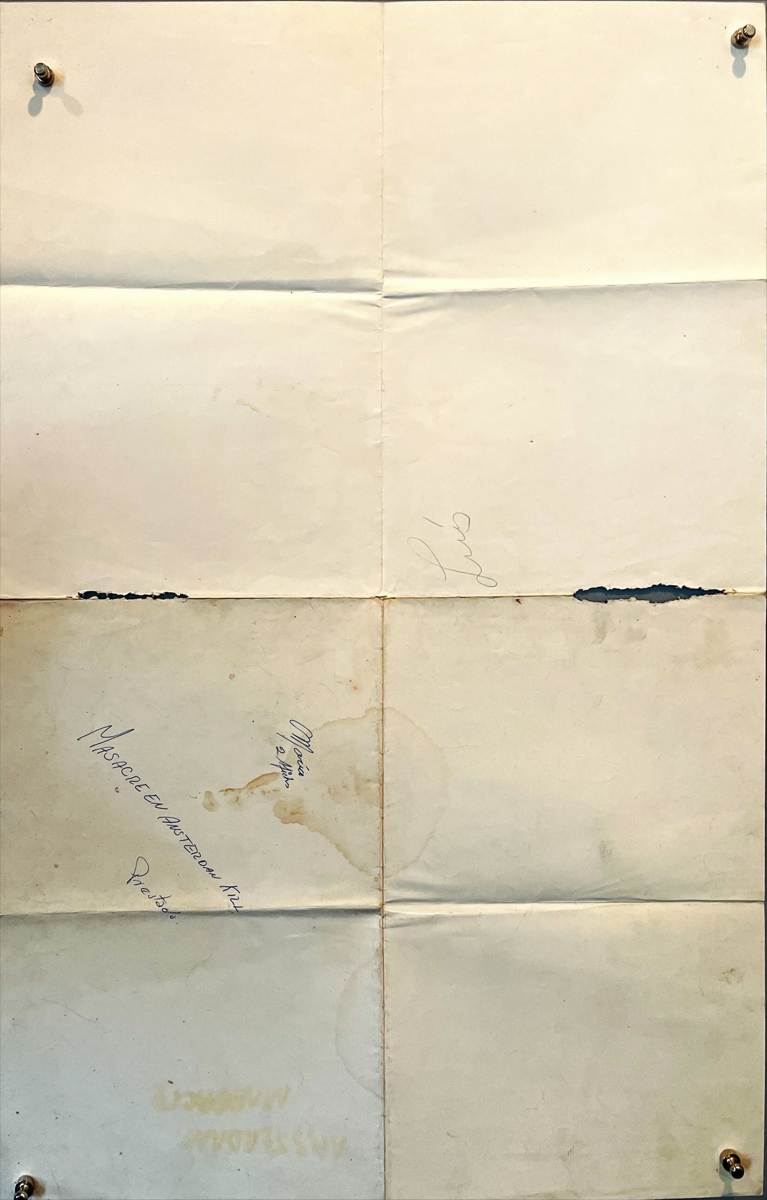 This striking original Hong Kong poster for Amsterdam Kill (1977), starring Robert Mitchum, presents a dynamic, action-packed collage of dramatic scenes and a large central portrait of Mitchum on the phone. The poster features bold red typography in Chinese characters and a vertical tear-like design dividing chaotic action on the left from Mitchum’s intense stare on the right. Folded as issued, it displays minor wear and visible water stains on the reverse, which slightly affect collectibility but not display value from the front. Hong Kong prints for English-language action thrillers of the 1970s are increasingly sought after for their unique designs and alternate promotional aesthetics.