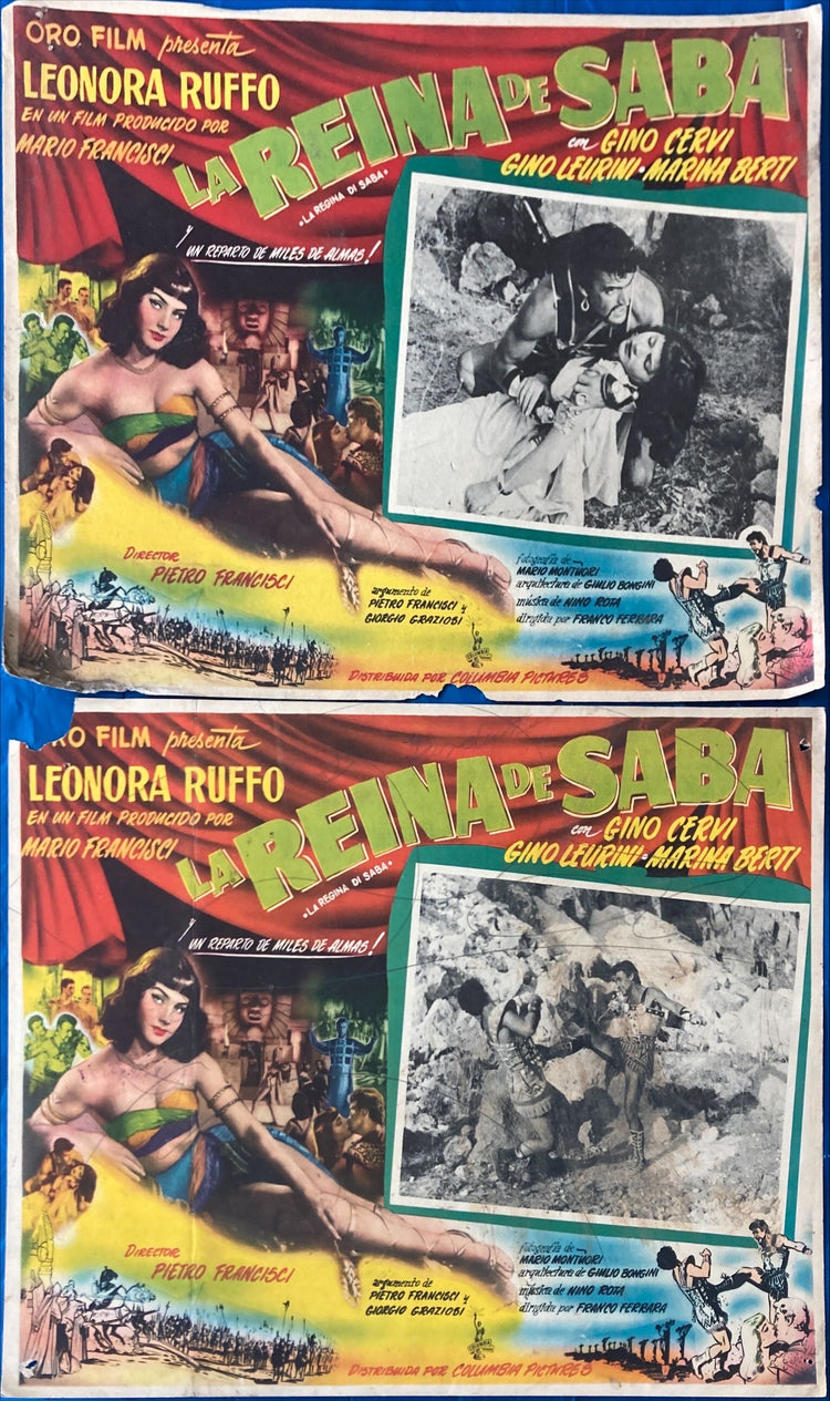 The Queen of Sheba (1953) 2 Vintage mexican Lobby Cards - the beauty of Sheba unsurpassed in time on Earth
