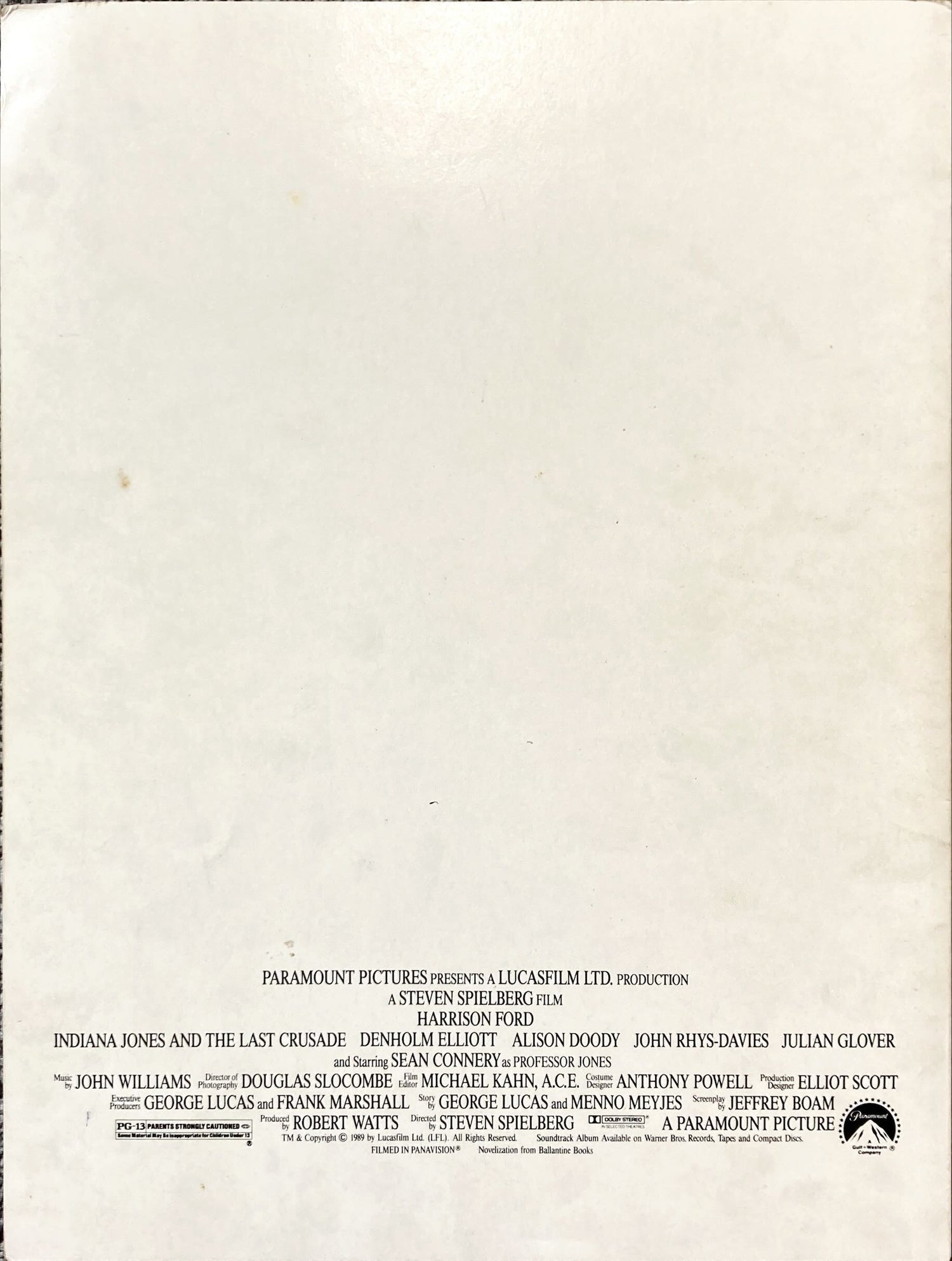 Indiana Jones and the Last Crusade, the 1989 Steven Spielberg World War II (WWII) treasure hunting search-for-the-Holy-Grail action adventure thriller melodrama ("Have the adventure of your life keeping up with the Joneses."; "The Man with the Hat is back. And this time he's bringing his dad."; "He's back in an all new adventure."