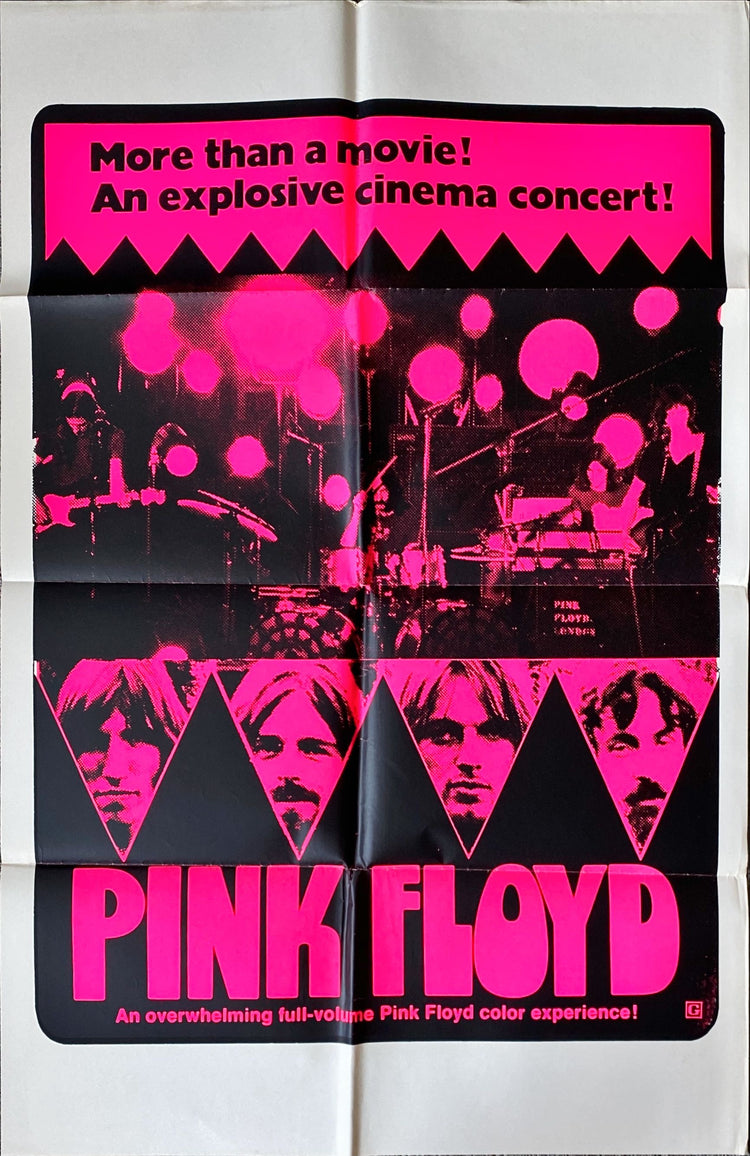 Pink Floyd (released in other English-speaking countries as "Pink Floyd Live at Pompeii"), the 1972 (released in the U.S. in 1974) Adrian Maben Belgian/German/French rock 'n' roll (rock and roll) music concert documentary ("More than a movie! An explosive cinema concert!"; "At last the rock wizards are unleashed on film"; "An overwhelming full-volume Pink Floyd color experience!"; "A cinema concert!"; "Super-pop-show") featuring Pink Floyd playing live versions of their songs in an old Pompeii amphitheater