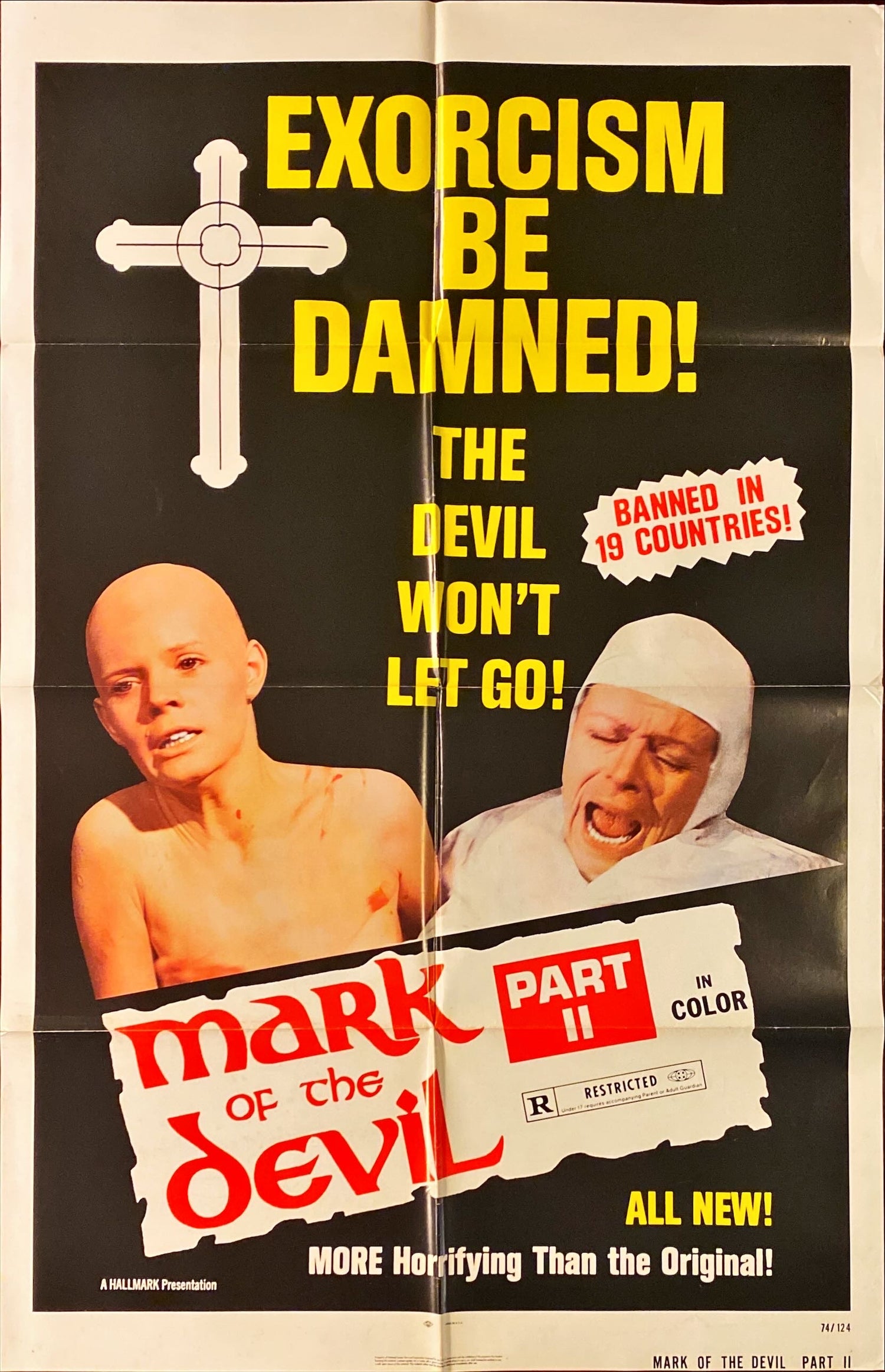 Hexen Geschandet und zu Tode Gequalt (released in the U.S. in 1974 as "Mark of the Devil Part II [Two]"), the 1973 Adrian Hoven English/German horror thriller sequel ("Damn the exorcist!"; "Exorcism be damned! The Devil won't let go!"; "Banned in 19 Countries!"; "More horrifying than the original!")