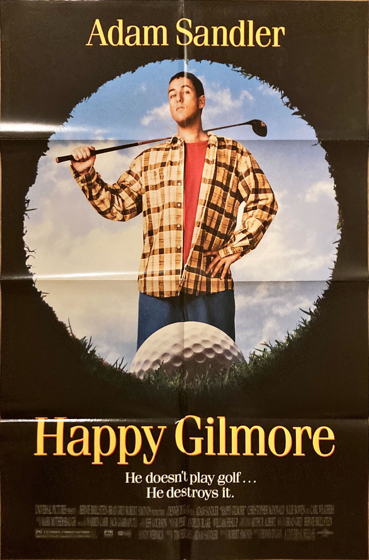 Happy Gilmore, the 1996 Dennis Dugan golfing sports screwball comedy ("He doesn't play golf... He destroys it.") starring Adam Sandler (in the title role as Happy Gilmore)